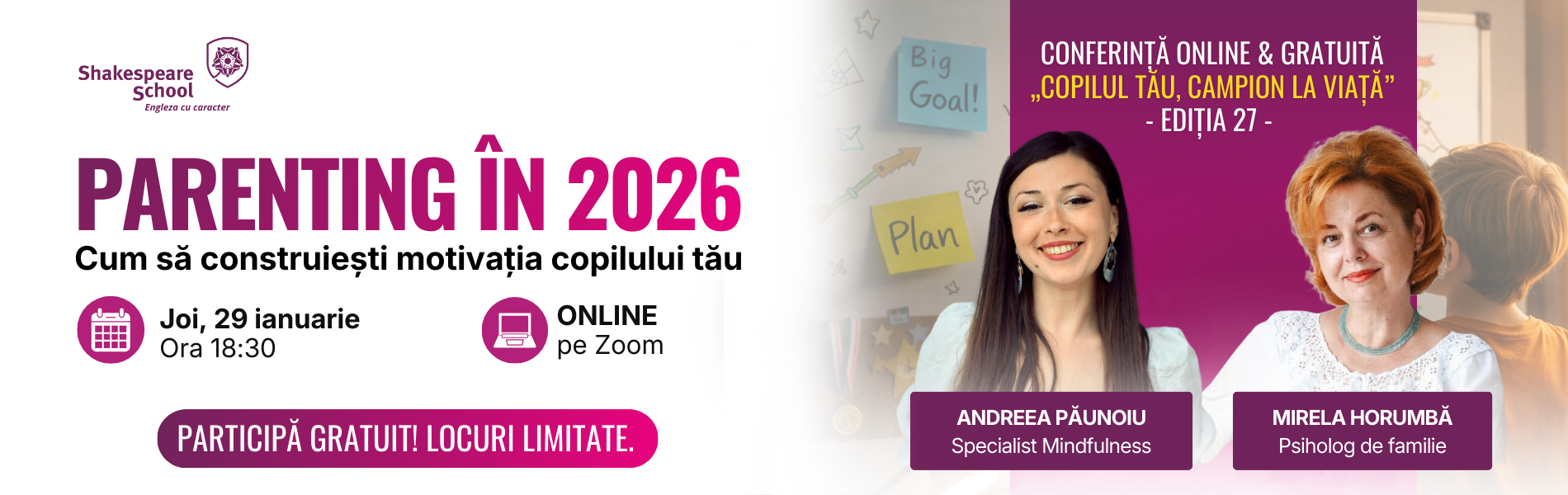 Tema: „PARENTING ÎN 2026: Cum să construiești motivația copilului tău?”
